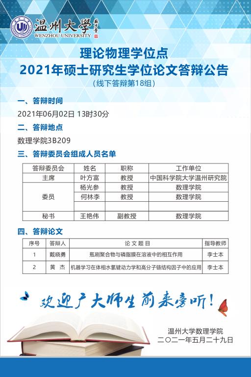 2018级硕士研究生学位论文答辩公告 (更新至2021.6.4)