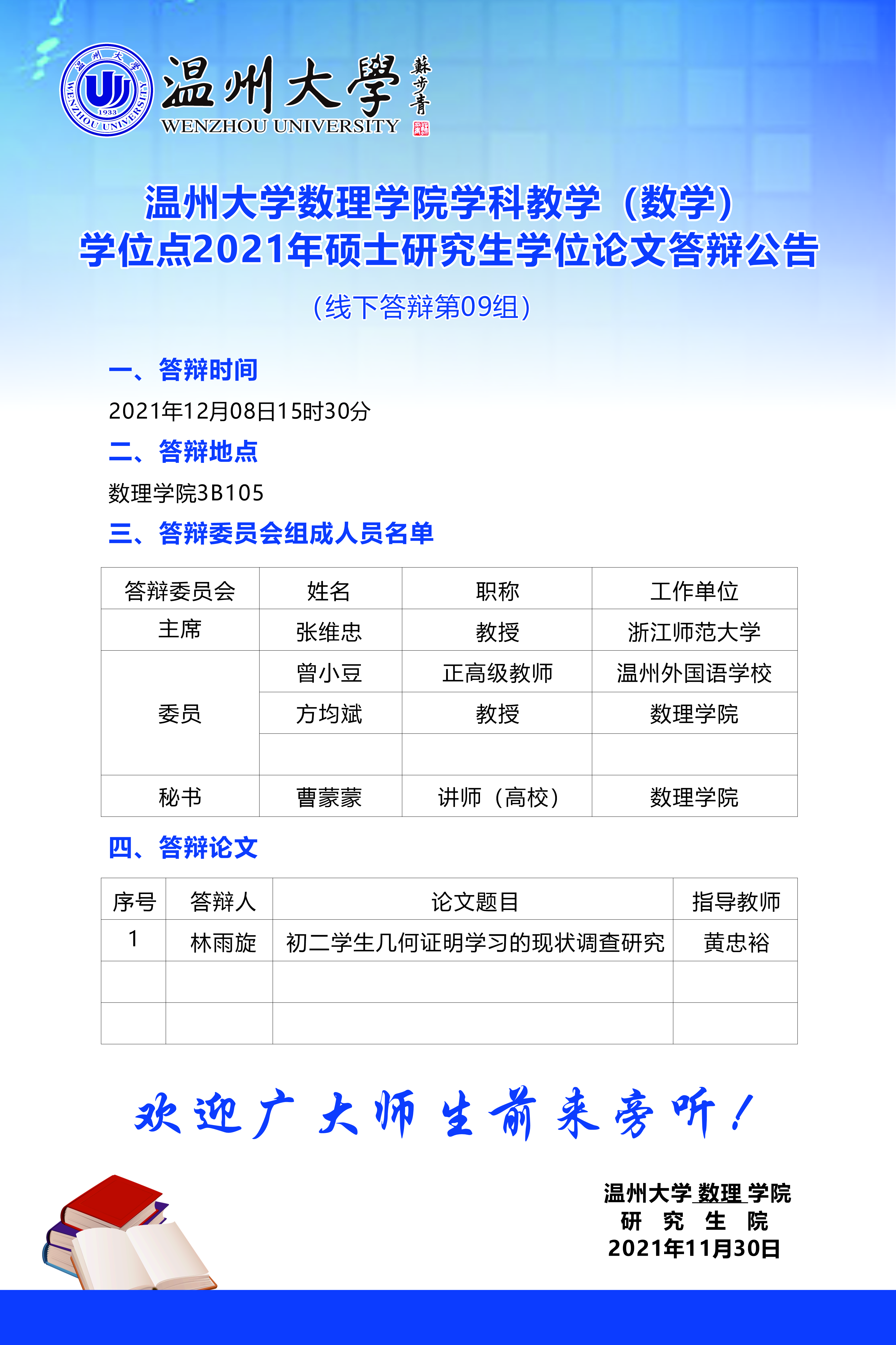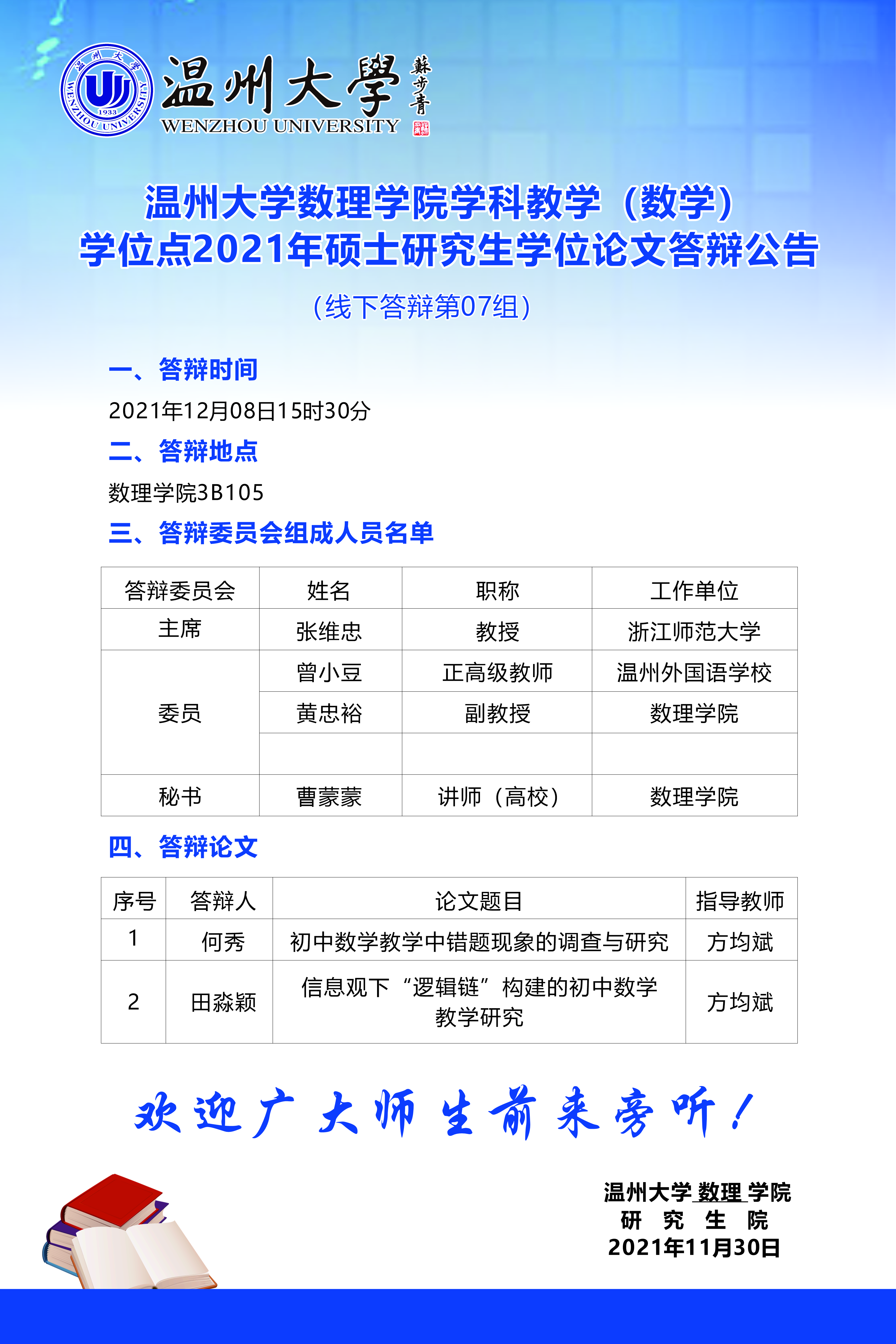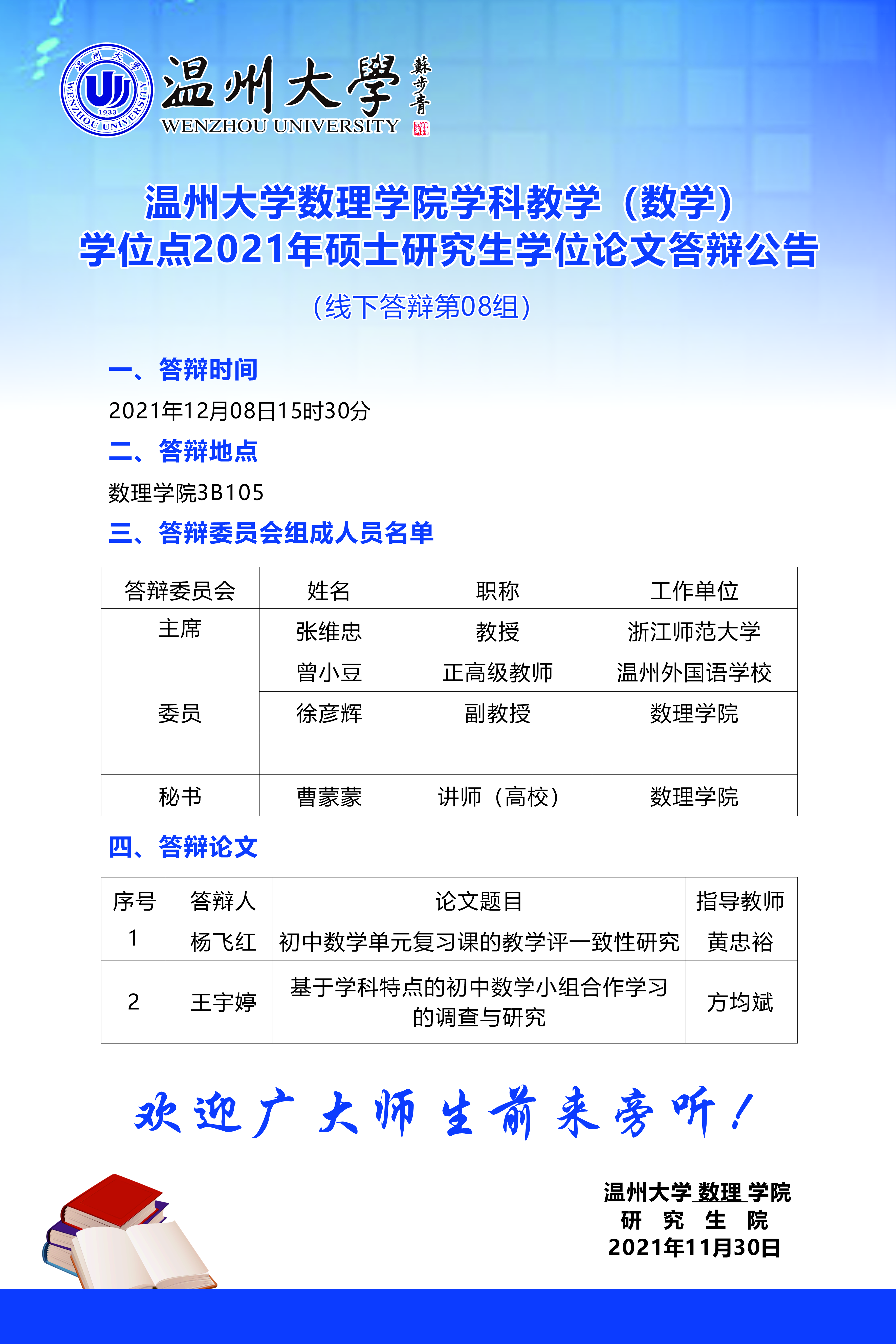 3044永利学科教学(数学)学位点2021年硕士研究生学位论文答辩公告