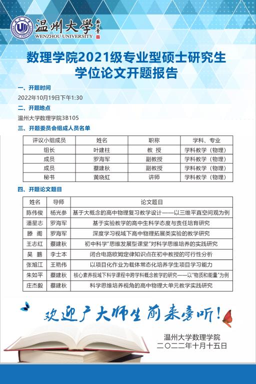 3044永利2021级学科教学(物理)专业型硕士研究生学位论文开题报告信息公告