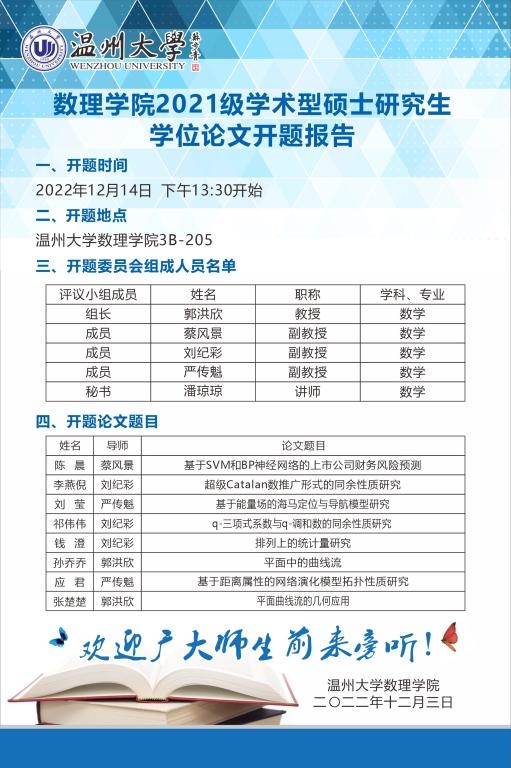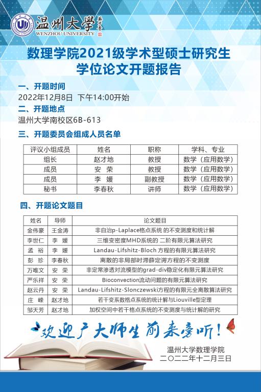 3044永利2021级数学专业学术型硕士研究生学位论文开题报告信息公告