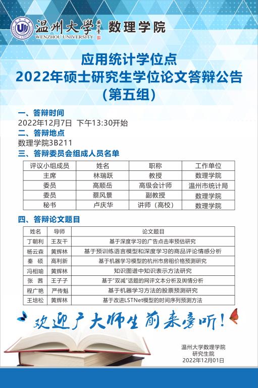 3044永利应用统计学位点2022年硕士研究生学位论文答辩公告