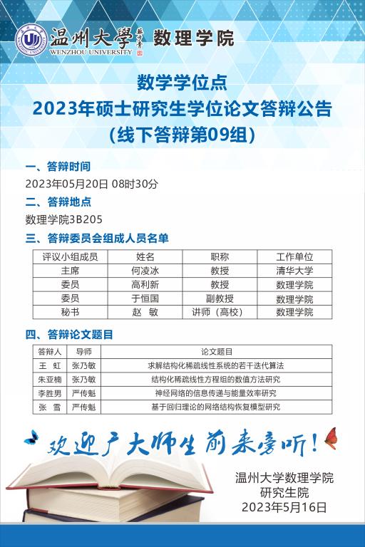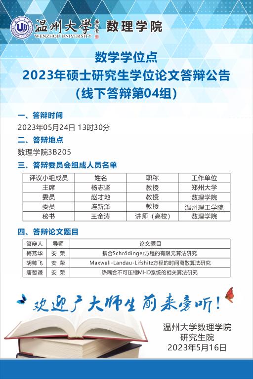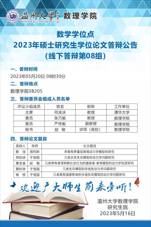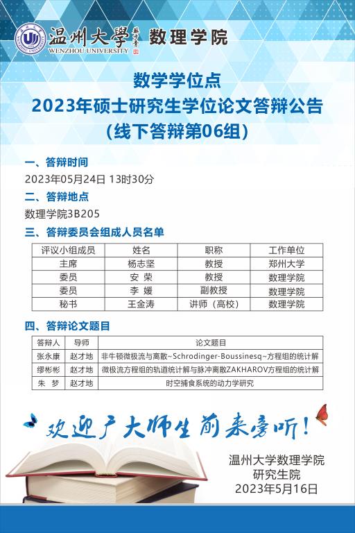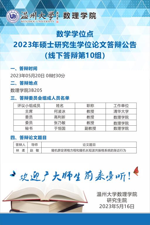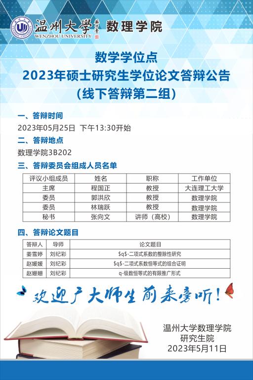 3044永利数学学位点2023年硕士研究生学位论文答辩公告