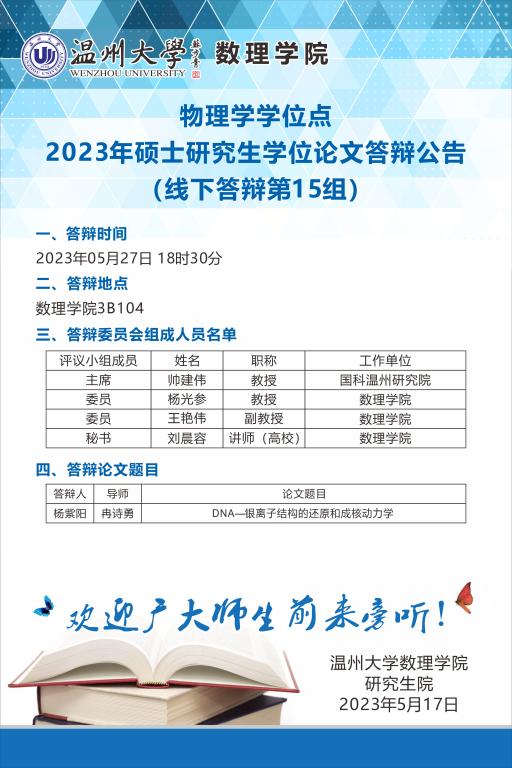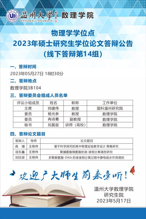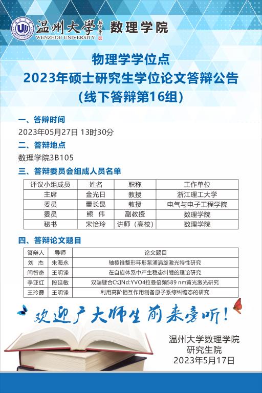 3044永利物理学学位点2023年硕士研究生学位论文答辩公告