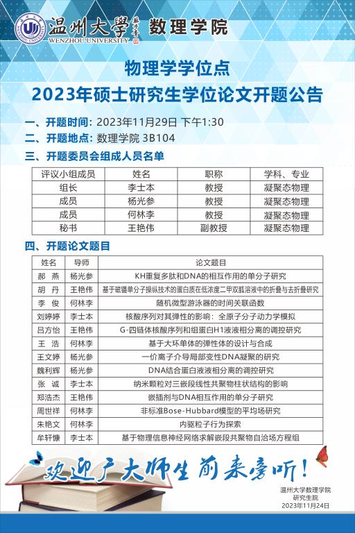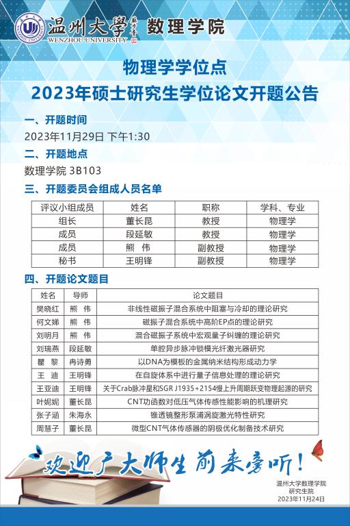 3044永利2022级物理学学术型硕士研究生学位论文开题报告信息公告