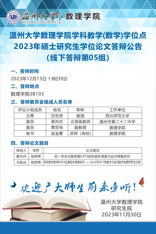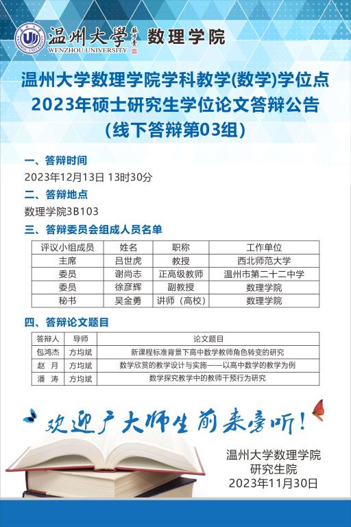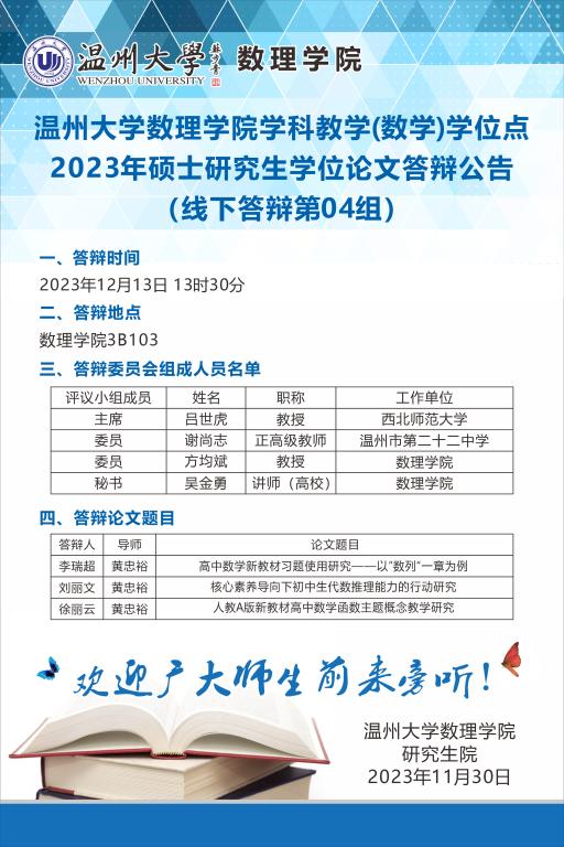 3044永利学科教学(数学)学位点2023年硕士研究生学位论文答辩公告