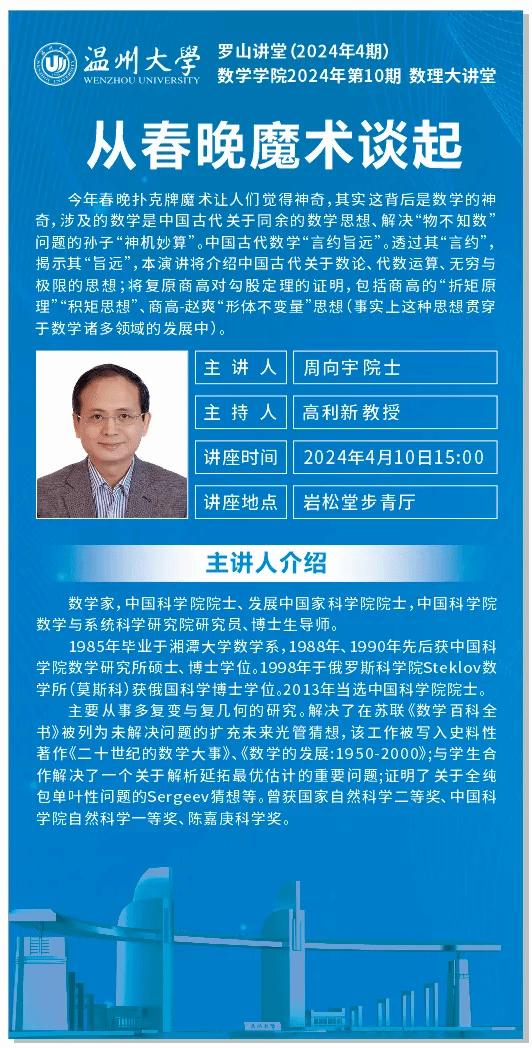 3044永利2024研究生学术文化节之“院士温州行”之《孜孜探寻数学之美,讲述·弘扬科学家精神》科普讲座