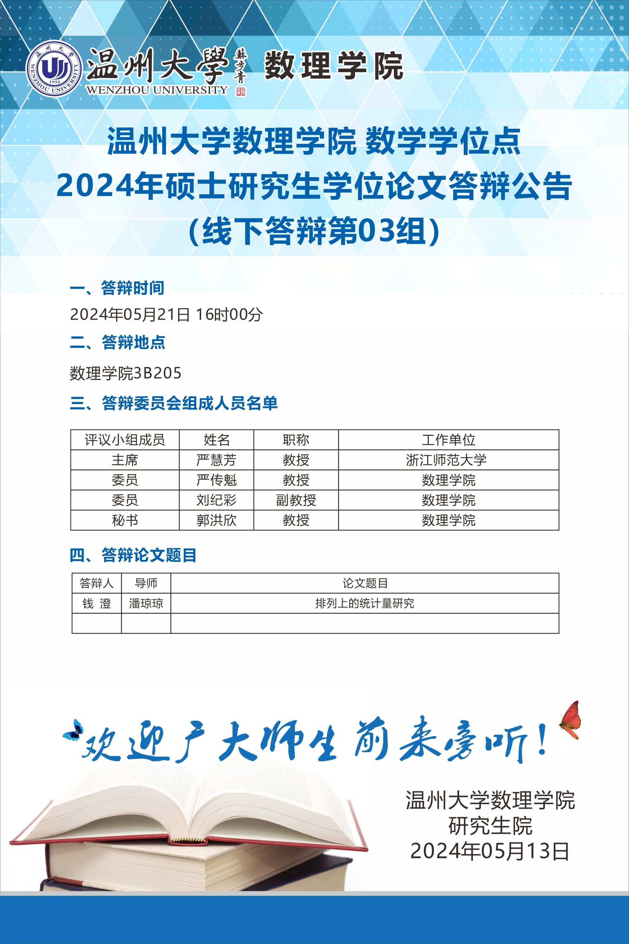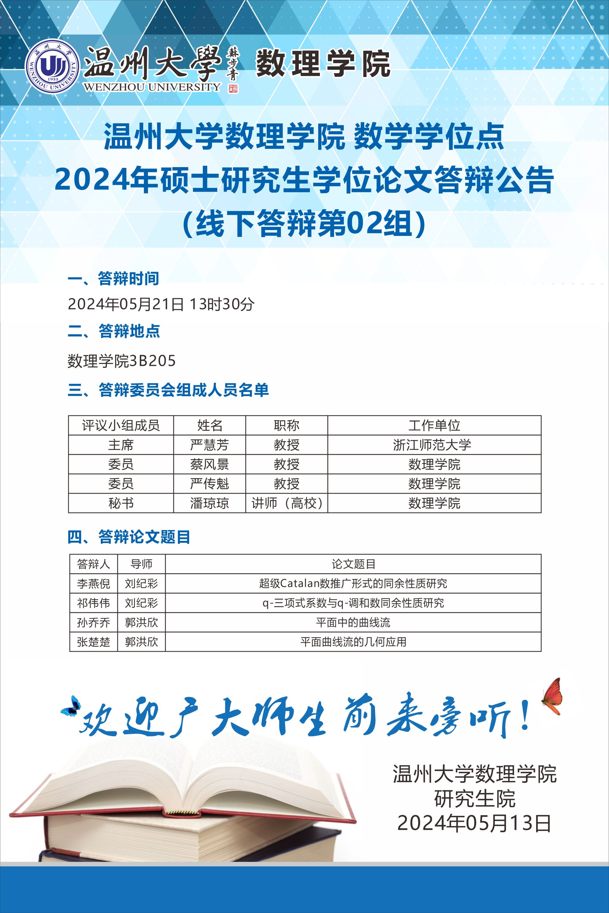 3044永利数学学位点2024年硕士研究生学位论文答辩公告