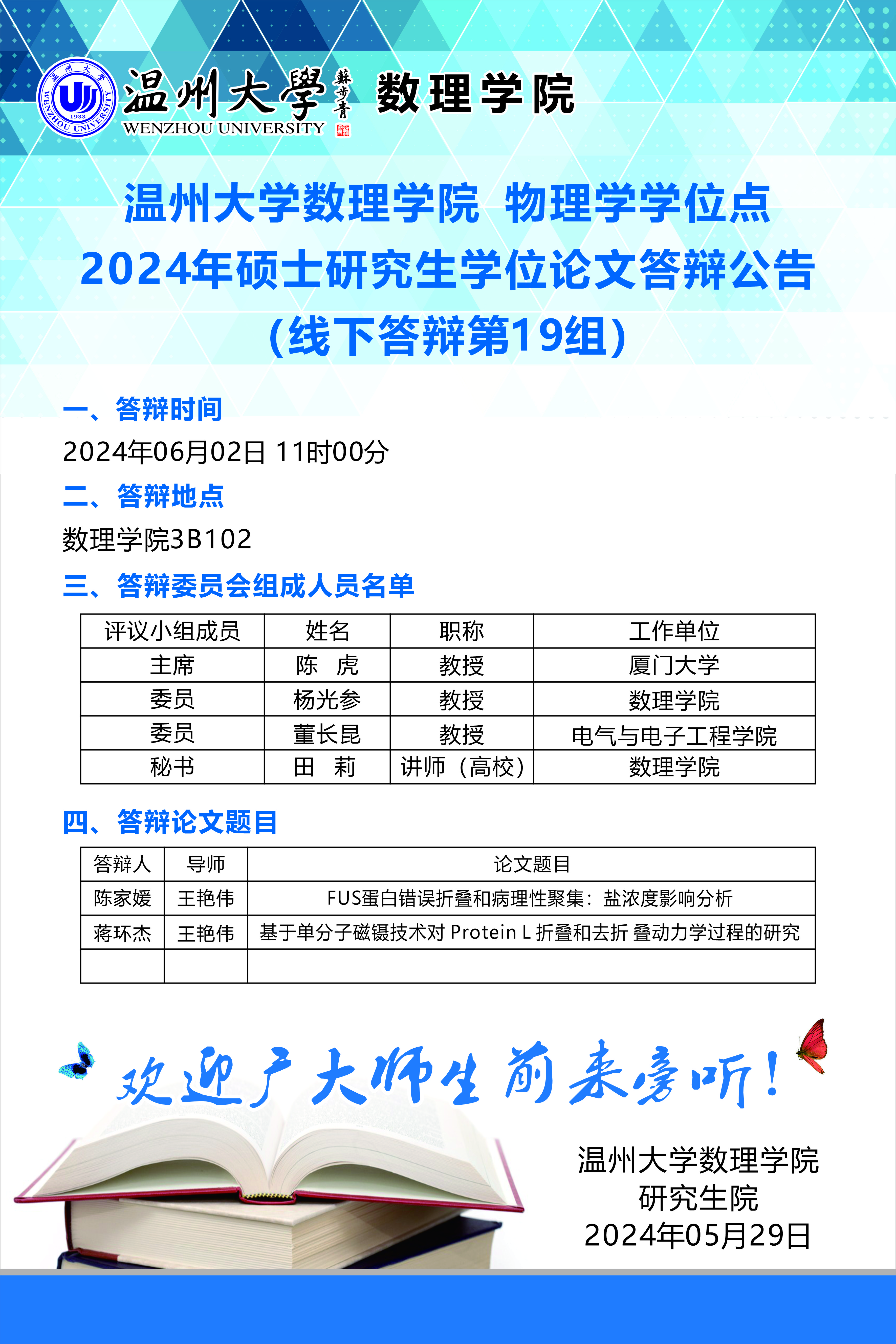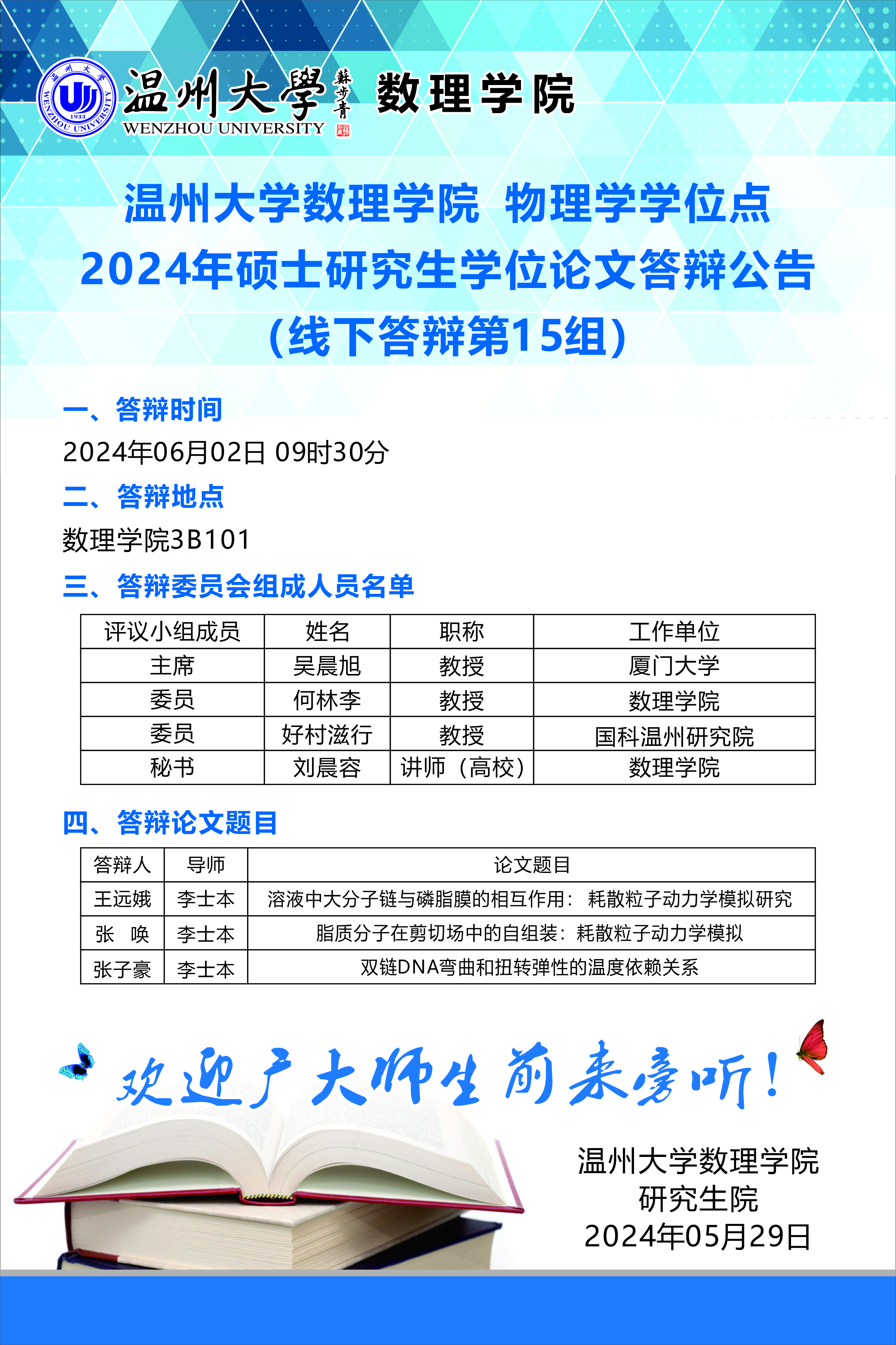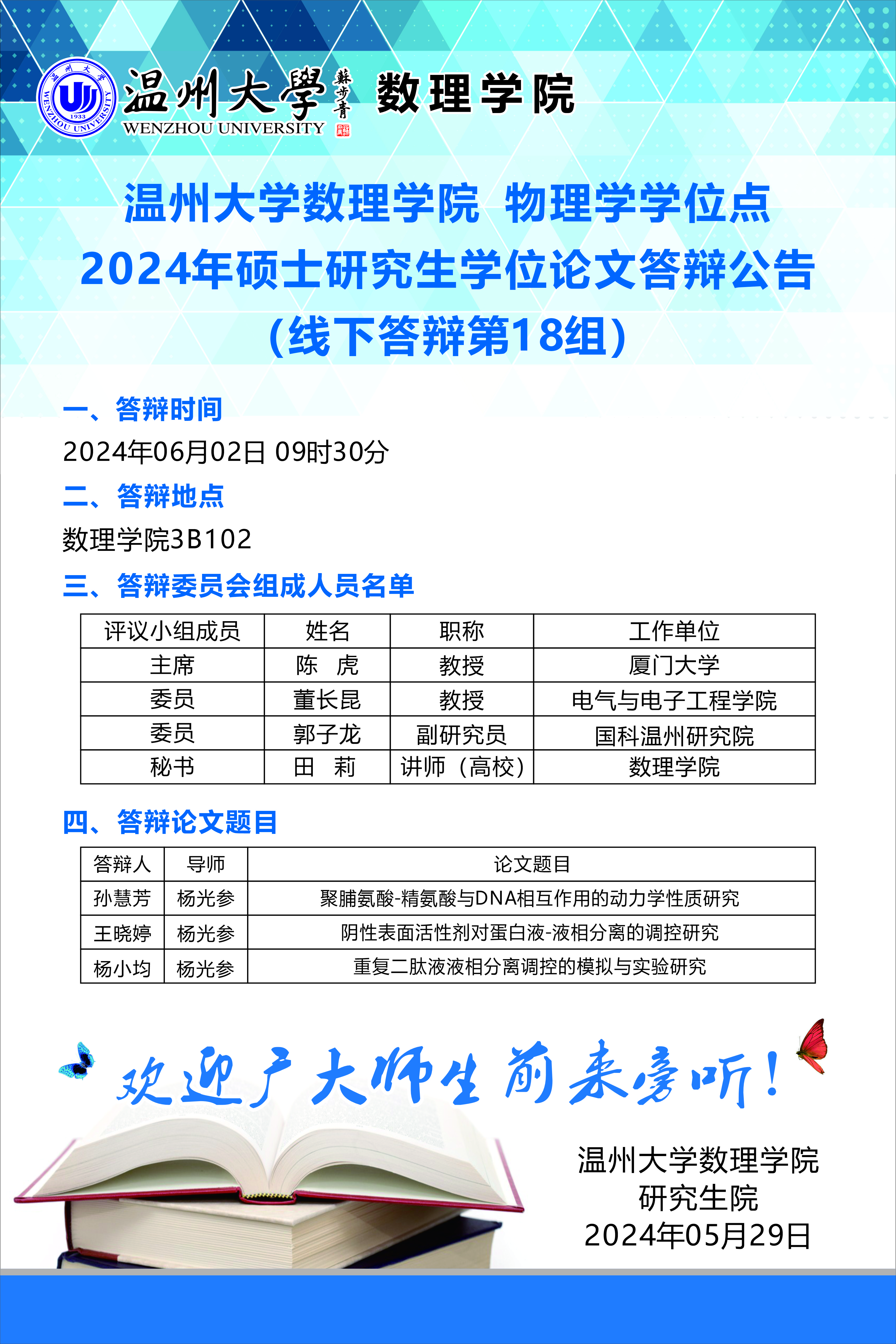 3044永利物理学学位点2024年硕士研究生学位论文答辩公告