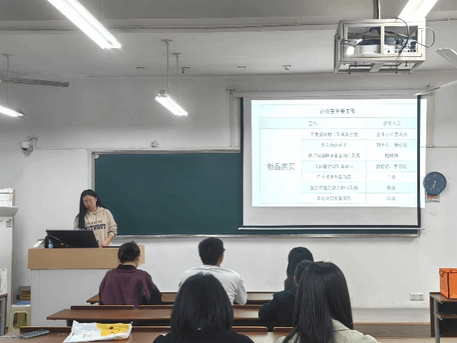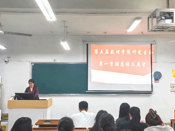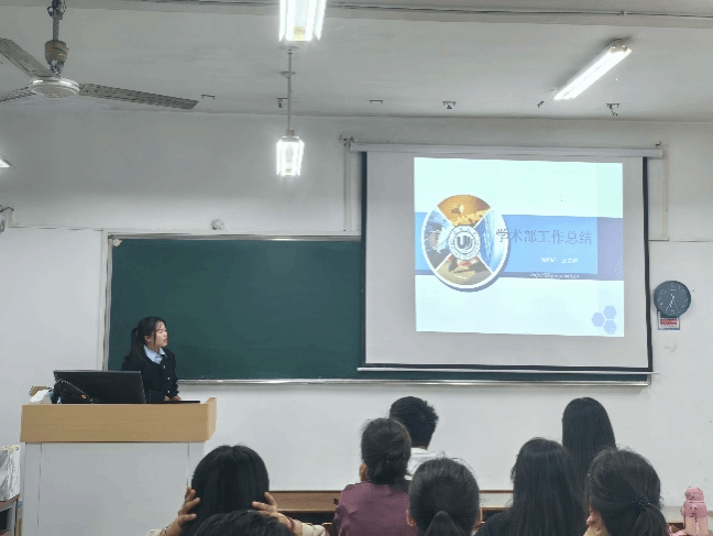 学术部部长王文婷分别介绍了23下半年完成的“弘扬温籍数学家精神”主题征文活动、“凝心聚力,共创未来”素质拓展活动、生涯规划分享沙龙、职业规划沙龙这5项活动和24上半年完成的考公分享沙龙、数学建模分享会、数理活动大讲堂这3项活动,学术部将持续为各位同学营造良好的学习氛围。