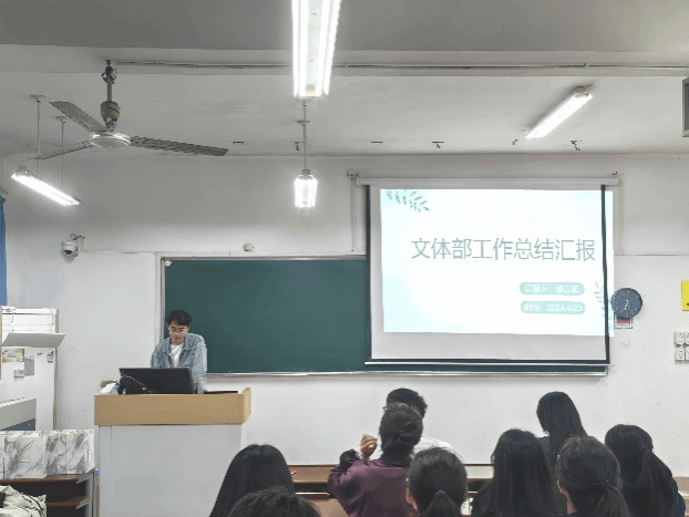 文体部部长蔡志和介绍了文体部在上一学期举办的新生破冰、乒乓球比赛、冬至包饺子、学风建设表彰大会暨元旦文艺晚会活动,分享了员工们积极参与、热情交流的盛况。此外,蔡志和还汇报了工作中的不足之处与改善方法,并对未来做出展望。