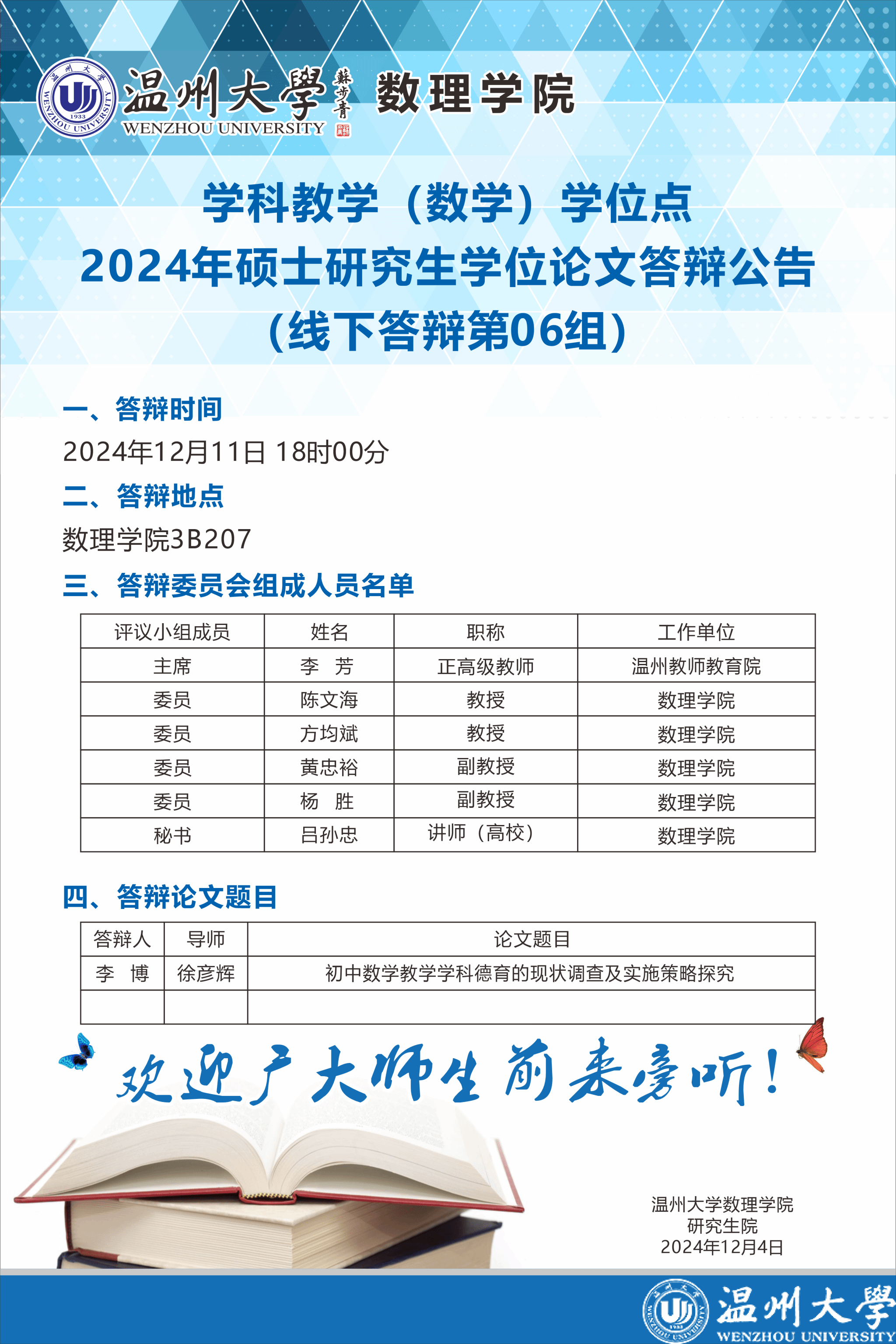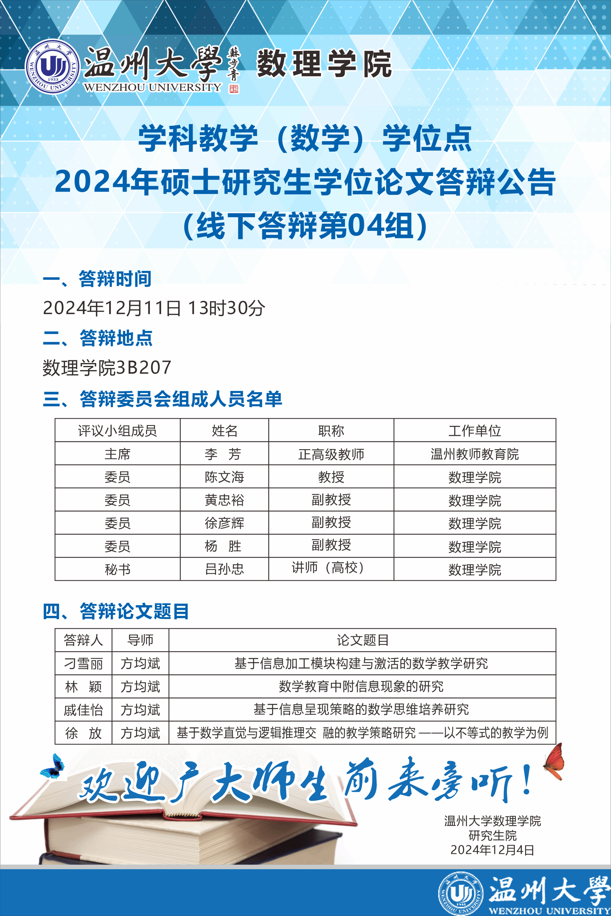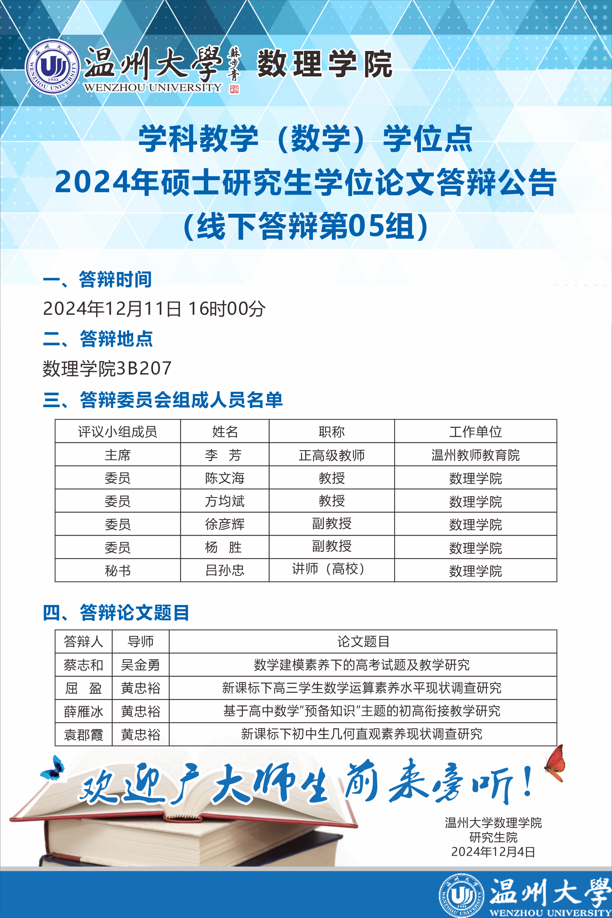 学科教学(数学)学位点2024年硕士研究生学位论文答辩公告