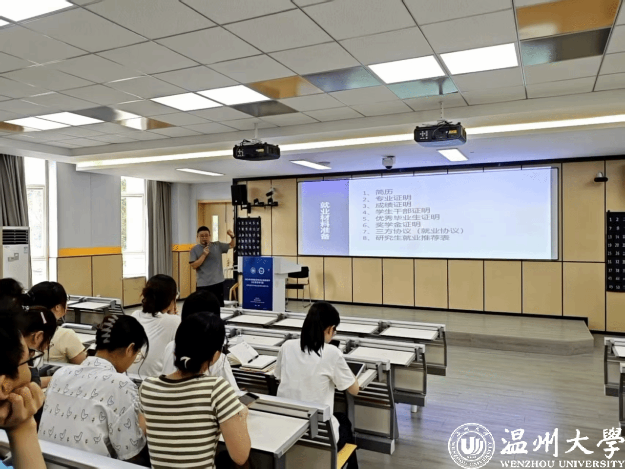 陈亮老师还结合多组真实求职案例,为同学们梳理了权威的信息搜集渠道、教师编制报考的关键流程、面试试讲的核心要点,以及三方协议签订中的注意事项,特别提醒同学们要尽早规划求职方向、理性评估就业机会、坚守诚信就业原则。互动环节,同学们针对求职疑问踊跃提问,陈老师逐一耐心解答,现场交流氛围热烈。
