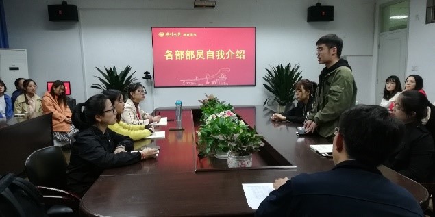 在研会各部门成员自我介绍环节中,研会主席和各部部长对研究生会各部门职能及重点工作做出详细的介绍,研会新成员们用热情大方的语言介绍了自己的家乡和个人特点等,也表达了自己加入研会的初心和愿景。