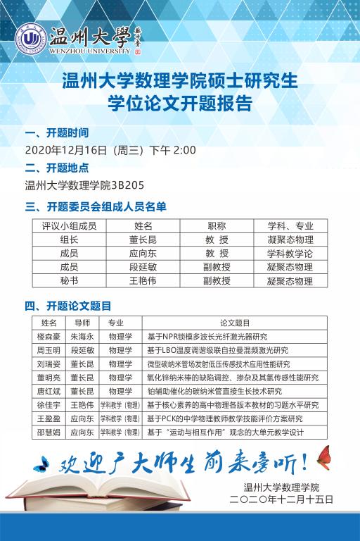 3044永利2019级硕士研究生学位论文开题信息公告(三)