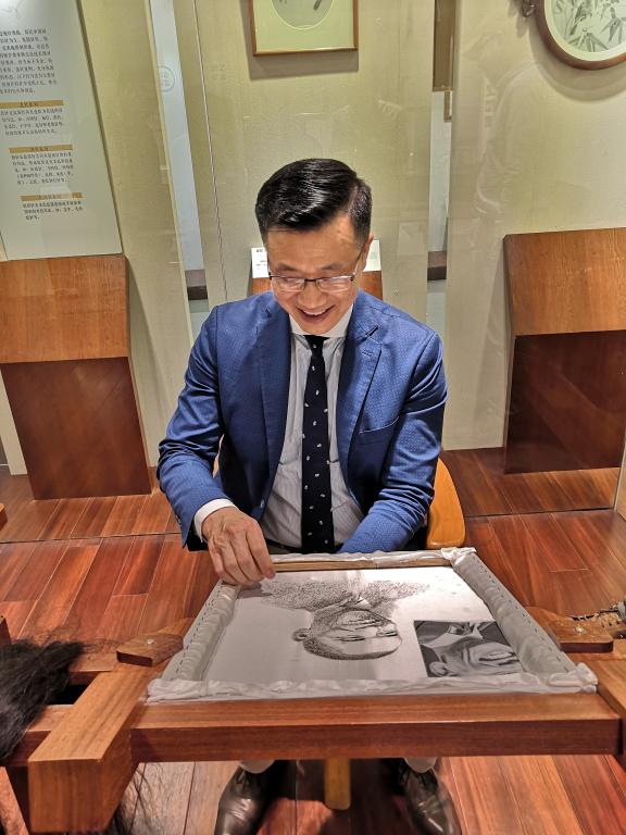 讲座之后,孙运之参观了公司发绣研究所和校园。党委书记谢树华,副董事长钱强与孙运之就“如何凝聚员工力量,发挥侨的优势,助力母校建设发展”展开亲切交流。