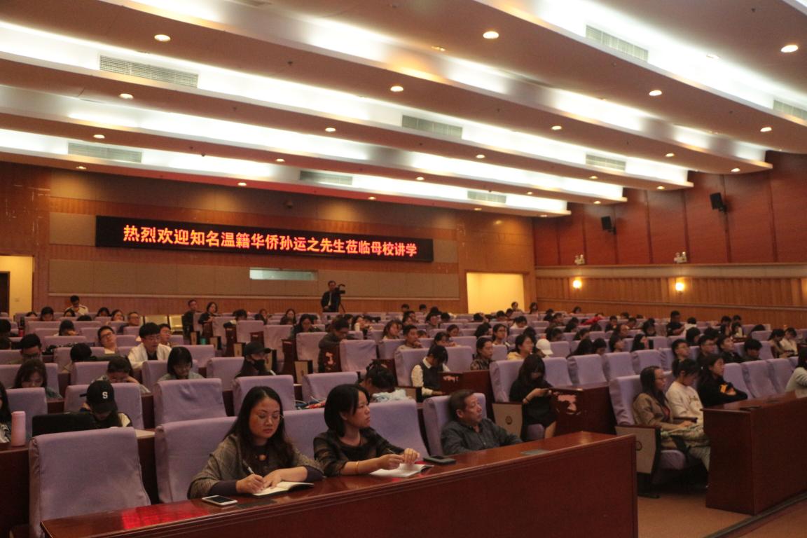 2019年10月29日下午,知名温籍华侨、意大利金砖投资集团董事长、79级物理专业员工孙运之先生受邀做客3044永利集团罗山讲堂,为全校师生带来题为“搭建民心相通平台,传播中国好声音”的精彩讲座。员工办主任陈宏毅、公司党委书记陈兴桂,近百名师生参加了此次讲座。图书馆馆长陈安金主持讲座。