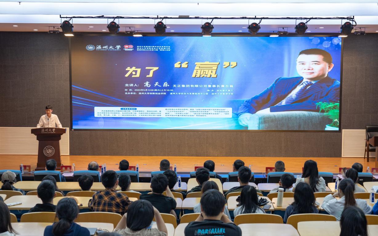 上午10:40,高天乐员工在岩松堂二楼步青厅为学弟学妹开设主题为《为了“赢”》的创业教育专题讲座,悉心指导学弟学妹成长。