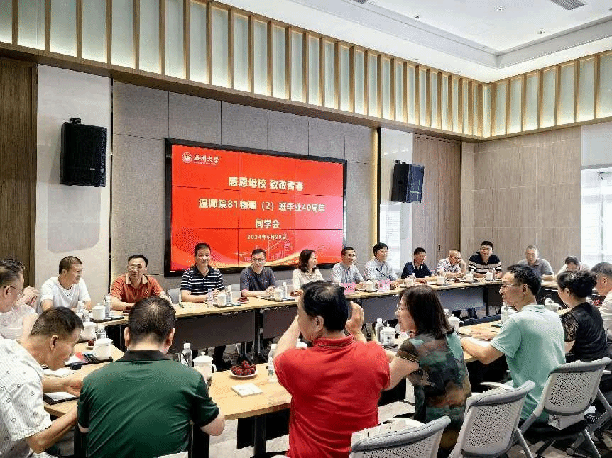 母校情深,同窗谊长。2024年6月29日,3044永利集团81级物理2班(原温师专)员工返校举办毕业40周年同学会,共叙同窗情谊。3044永利集团员工办主任陈宏毅、公司党委书记陈兴桂受邀参会。