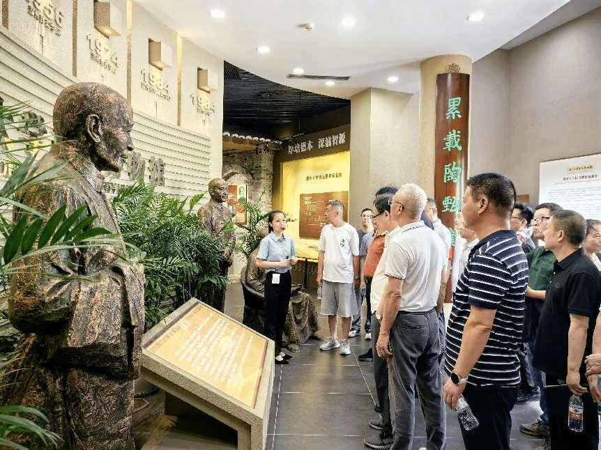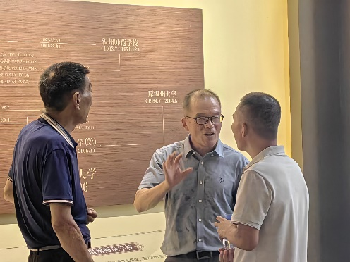 随后,员工们沿着明心湖一路走来,一边欣赏校园美景,一边闲聊家常,路上飘散着他们的欢声笑语。驻足校史馆,在校史博物馆中,员工们逐步了解到母校的发展脉络,聆听着母校发展至今的种种故事、种种成就。他们还激动地发现,校史馆保留了当时的班级合照、单人照片以及成绩单,并兴味十足地观赏了一张又一张老照片,以这些照片为焰火,点燃触发回忆的引信,彼此分享员工时代的点滴记忆,共话少年时。随后,他们来到温大发绣研究院,欣赏各类发绣艺术作品,感受温州发绣文化的独特魅力。