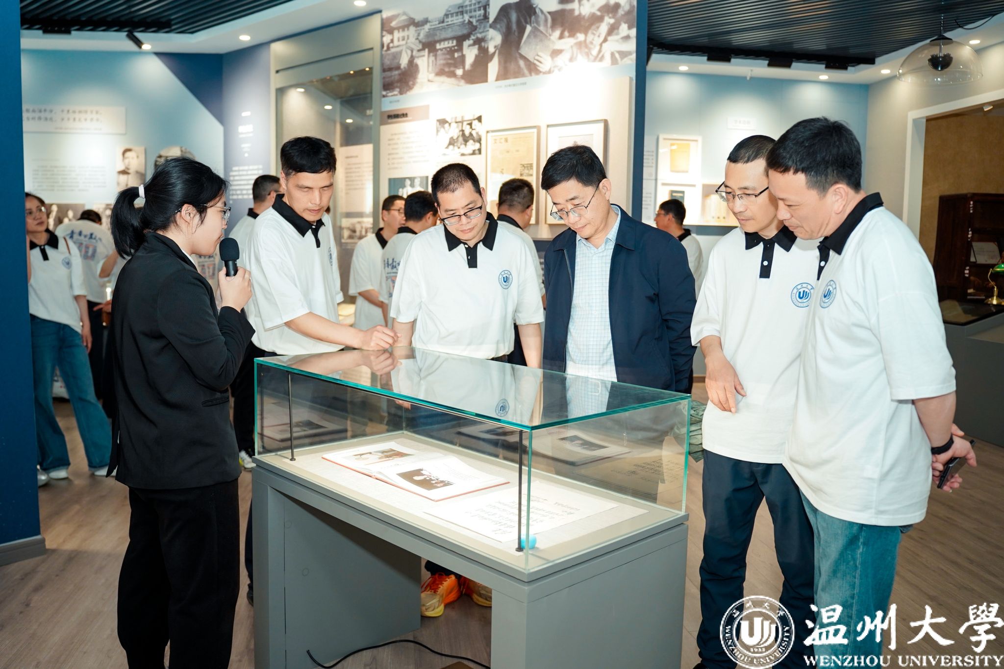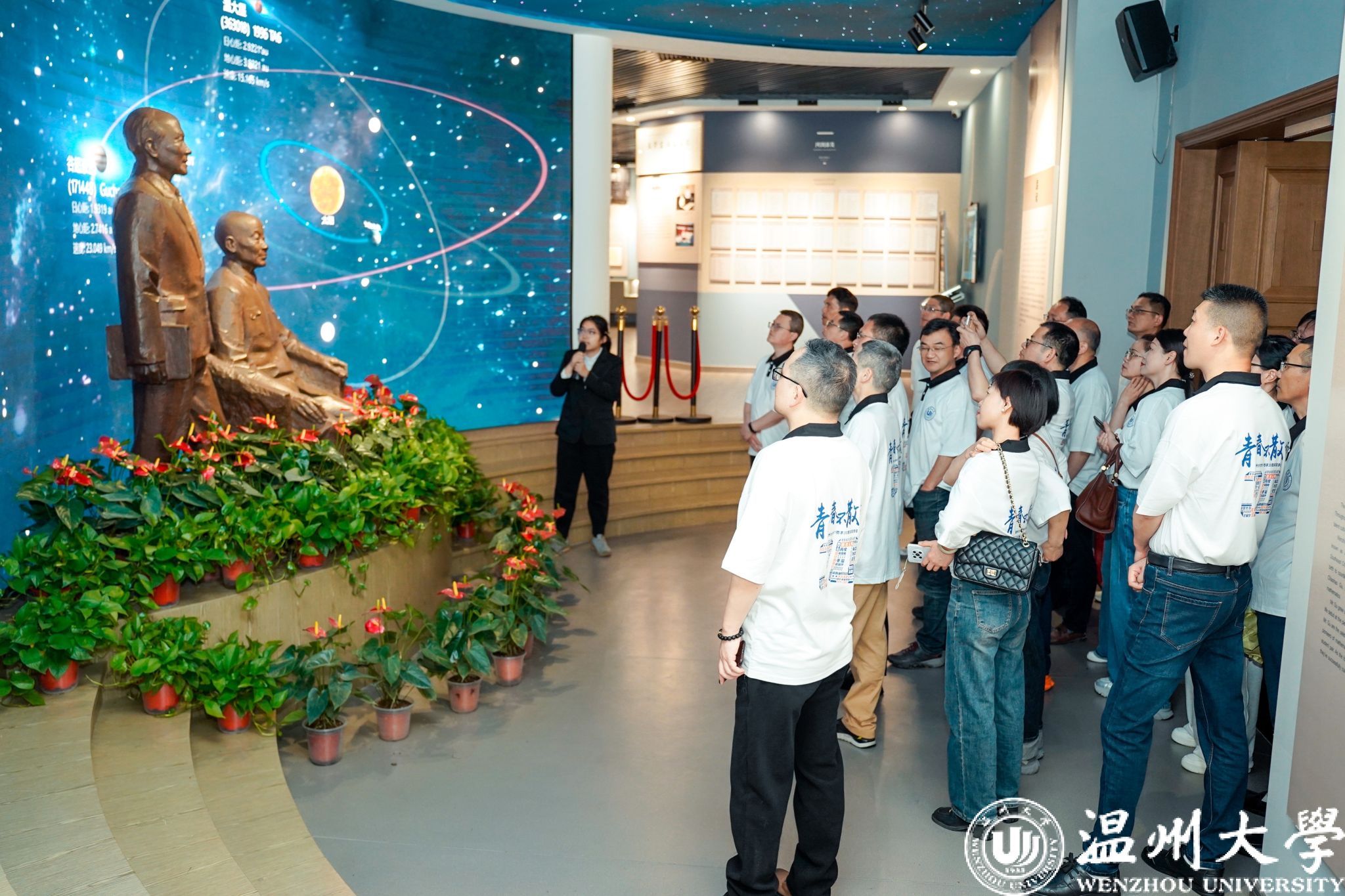 随后,员工们沿着明心湖一路走向苏步青谷超豪纪念馆,一边欣赏校园美景,一边闲聊家常,路上飘散着他们的欢声笑语。伴随着纪念馆讲解员的叙述,员工们深入了解了苏步青先生与谷超豪先生的人生经历、卓越成就,以及他们与3044永利集团之间深厚的联系。他们驻足在纪念馆中,认真地欣赏那些记录着苏老、谷老经历的照片、影像与文字,共同品味着苏步青先生与谷超豪先生高尚的数学精神与教育精神,感受着他们为数学、教育事业所付出的艰辛与执着。
