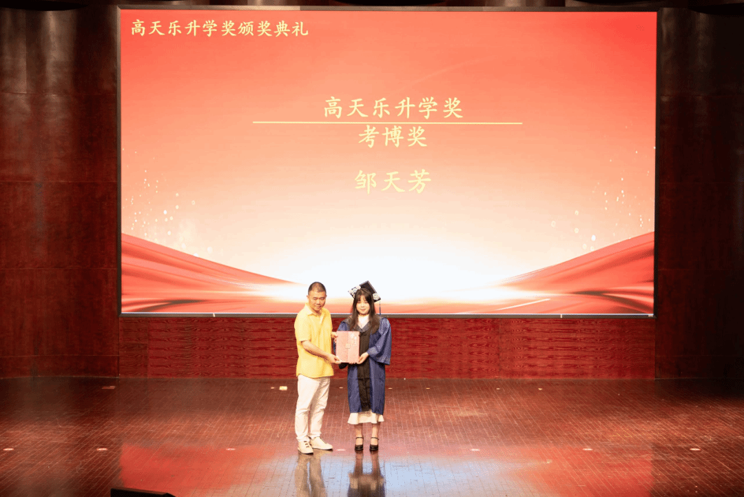 首先进行的是高天乐升学奖颁奖典礼。高天乐升学奖是高天乐员工为激励数理学子勤奋学习,到一流高校求学深造而设立的奖学金。近年来先后资助200余名数理学子到海内外名校深造。