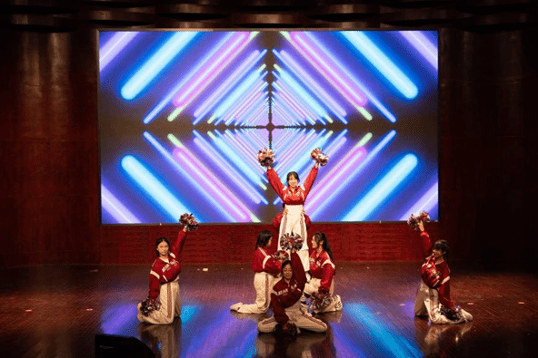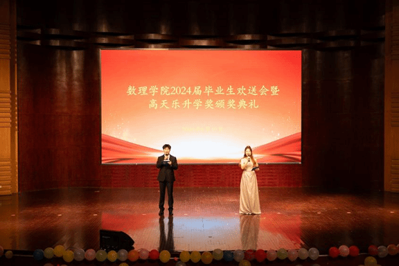 欢送会第二阶段,师生们为毕业生带来了丰富多彩的文艺演出。苏步青谷超豪宣讲团带来的舞台剧《传承》深入讲述了苏步青和谷超豪的爱国、爱乡、爱教育故事,用科学家精神激励每一位即将步入社会的毕业生。四位藏族女孩带来的传统舞蹈《昨夜》,以其独特的民族风情和精湛的舞技,赢得了现场观众的热烈掌声。毕业生们则通过一系列歌曲串烧表演,表达了对未来的憧憬和对青春岁月的不舍。20应数2班班主任黄忠裕老师演唱歌曲《风雨兼程》,表达了对毕业生的真挚祝福。由熊伟、金捷、张栋、宋怡玲等老师带来的节目《三句半》,以风趣幽默的语言表达了对毕业生们的热情和不舍,将现场氛围推上了高潮。