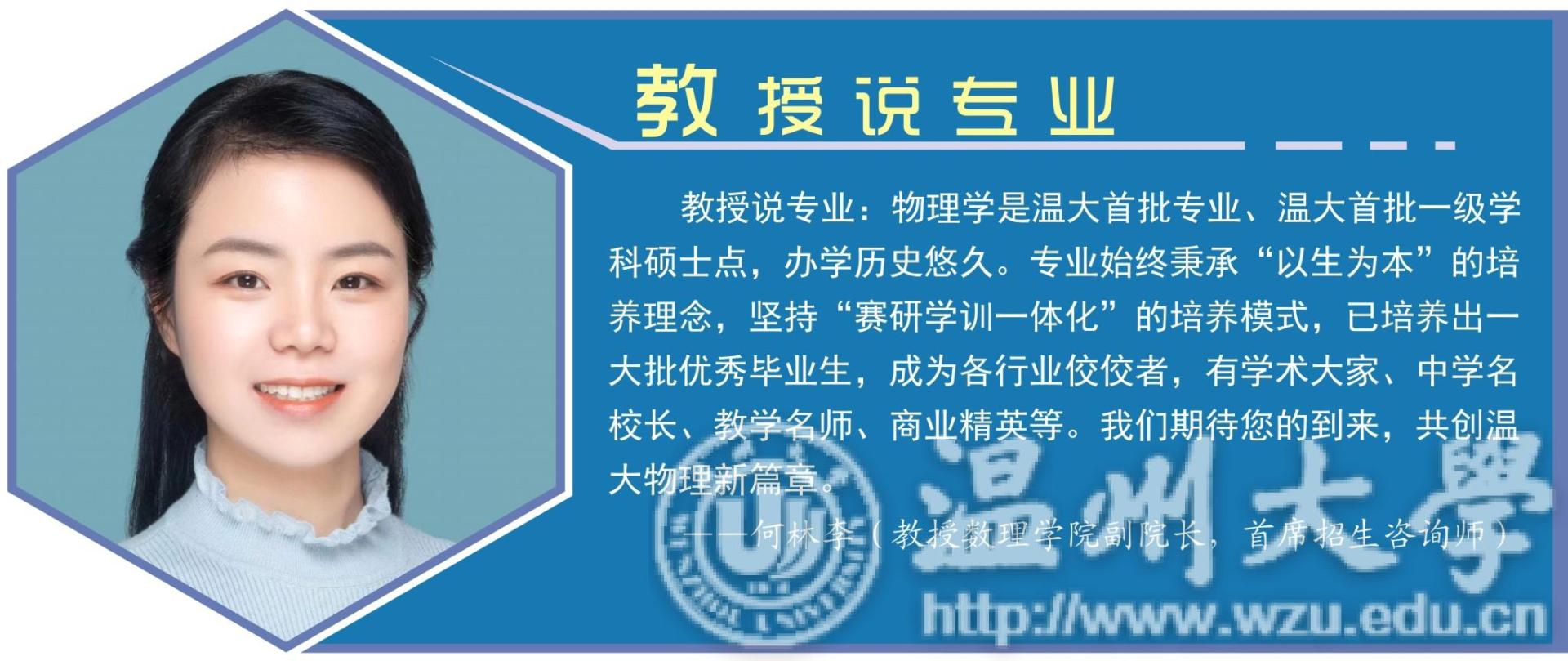学科背景:依托于物理学一级学科硕士点,设有凝聚态物理、理论物理、物理学课程教学论和学科教学(物理)等二级学科硕士点,其中凝聚态物理为浙江省重点学科A类。