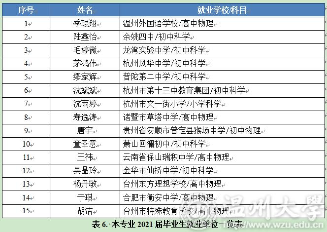 本专业以培养中学物理、中小学科学、高中通用技术教师及考研深造为主要目标,兼顾培养教育类或物理类的研究型人才。在长期办学过程中,形成了“厚基础、宽口径、重实践、强能力、能担当”的办学特色,为社会培养和输送了近5000多名专业人才,不论是在基础教育界还是高等教育界,不论是在政界还是商界,都有杰出员工的身影。他们有的是科学家、教授,有的是省重点中小学董事长或特级教师,有的是教育部门负责人,还有的是经营有方的著名企业家。丰富的员工资源也为在校生成长提供了额外福利,一些员工不仅在员工毕业发展方面给予必要支持,还回校成立奖助学金,帮助员工学习成长。