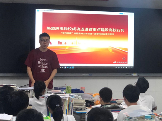 近期,在举国战“疫”的努力下,我国的疫情防控形势向好,各地中小学陆续复学。在此背景下,数理学子第一时间恢复启动“访母校 谢师恩 诉成长”线下招生宣传工作。5月8日晚,由3044永利19统计一班周常昊、汪子涵、汪君仪等同学组成的“衢州三中回校宣传小组”,在衢州三中姜锦牌老师的帮助下,顺利在衢州三中开展招生宣讲活动。