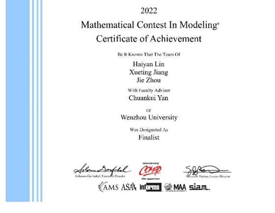 温州新闻:2022年国际老员工数学建模竞赛温大喜获佳绩