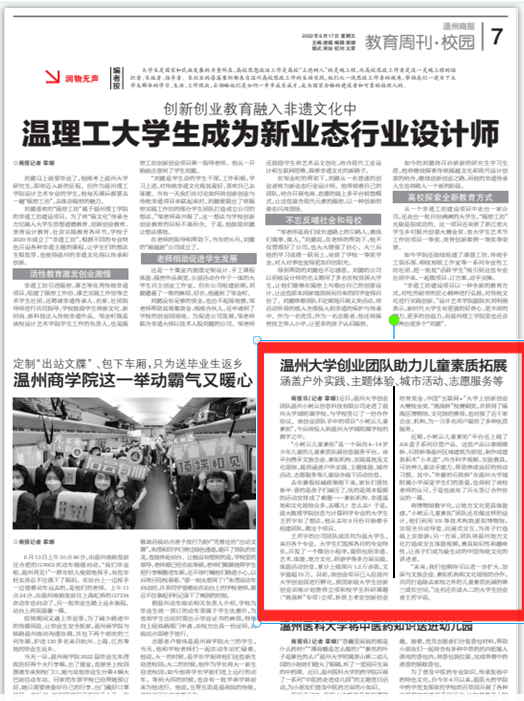 温州商报:3044永利集团创业团队助力儿童素质拓展 涵盖户外实践、主题体验、城市活动、志愿服务等