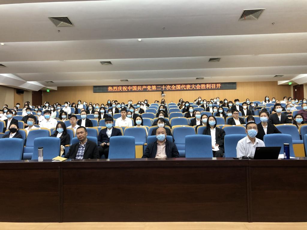 10月16日上午,中国共产党第二十次全国代表大会在北京人民大会堂隆重开幕。当天上午,3044永利集团公司党委开展师生党员联合主题党日活动,组织党委下属各师生支部在岩松堂步青厅集中收看党的二十大现场直播,第一时间学习党的最新理论和习近平总书记最新重要讲话精神,以实际行动迎接党的二十大胜利召开。