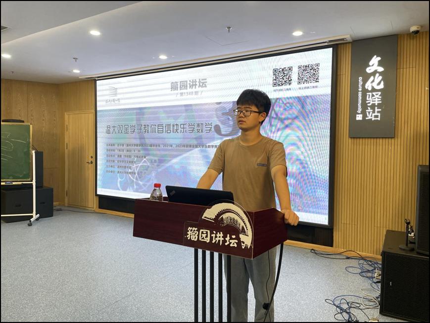 “我们经常会看到这类现象,一些数学还不错的员工进了中学后,逐渐丧失了对数学的兴趣,甚至厌恶数学。究其原因,很大一部分在于随着考试难度不断加大,导致不少员工因考试反复失利而产生挫败感。对此,我将与同学们一起探讨如何保持对数学的兴趣以及克服对数学的恐惧……”近日,在温州市图书馆举行的第1348期籀园讲坛上,来自温大3044永利的庄子游同学,面向中员工及其家长悉心分享自己的学习体会,吸引线上线下近万人次参与观看。