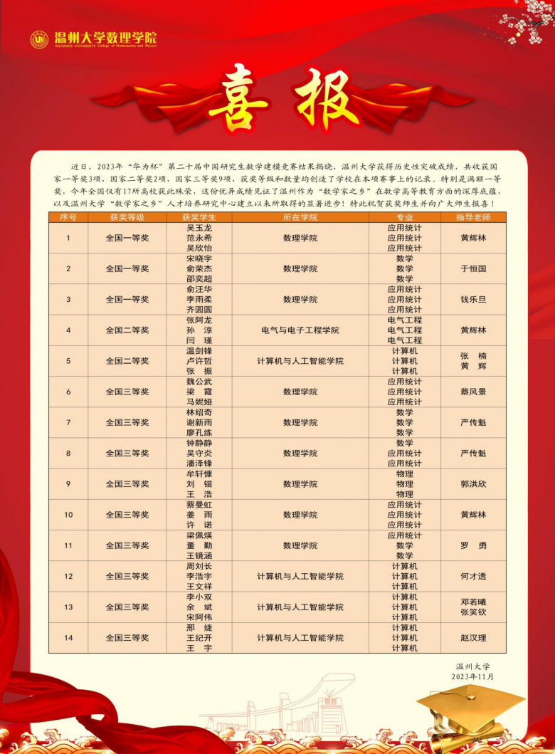 掌上温州客户端:新突破!2023中国研究生数学建模竞赛揭晓,温大“满额”一等奖