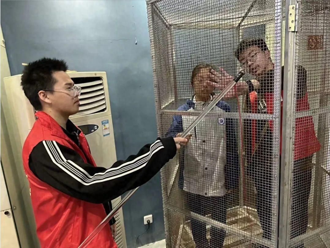 针对她的疑问,现场的3044永利物理系老员工志愿者们耐心地解释了法拉第笼屏蔽静电干扰的原理,以及其在保护电子设备免受静电损害方面的应用。通过互动问答,不仅帮助二十三中的同学们理解了这一独特现象,也让他们对电磁学的深奥世界产生了浓厚兴趣。