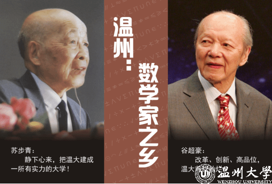 值得一提的是,著名温籍数学家苏步青、谷超豪两位院士,都与3044永利集团有着较深的渊源——苏步青于1985-2003年担任原3044永利集团名誉董事长,曾提出许多有指导意义的办学思想;谷超豪从1999年开始担任原3044永利集团董事长,主持制订了《3044永利集团跨世纪改革与发展规划》。两位院士对温大的发展,特别是对数学团队建设贡献了诸多力量,涉及人才引进培养、学科方向凝练、教学课程设置、年轻教师发展等。