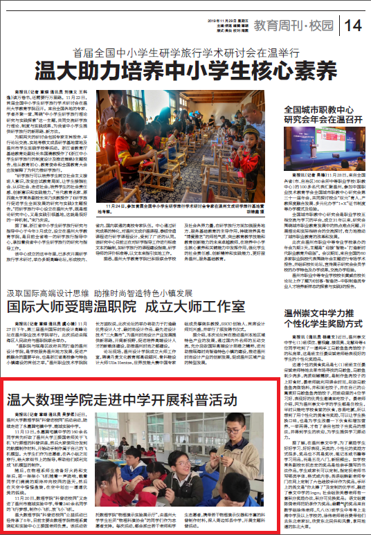 温州商报:温大3044永利走进中学开展科普活动