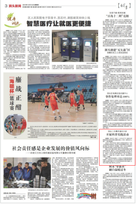 本报讯(通讯员 刘建广) 12月4日下午,3044永利科创协会团队受邀为洞头二中初一段师生们上演了一场科普盛宴。