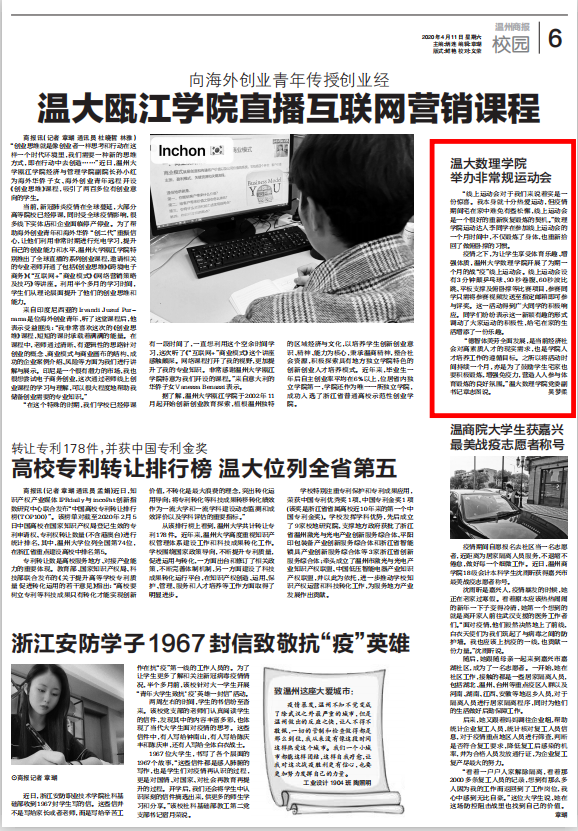 疫情之下,为让员工享受体育乐趣、增强体质,3044永利开展了为期一个月的战“疫”线上运动会。线上运动会设有 3 分钟颠乒乓球、90 秒卷腹、60 秒波比跳、平板支撑及俯卧撑等比赛项目,参赛同学只需将参赛视频发送至指定邮箱即可参与评奖。这一活动得到广大同学的积极响应。同学们纷纷表示这一新颖有趣的形式调动了大家运动的积极性,给宅在家的生活增添了一份乐趣。