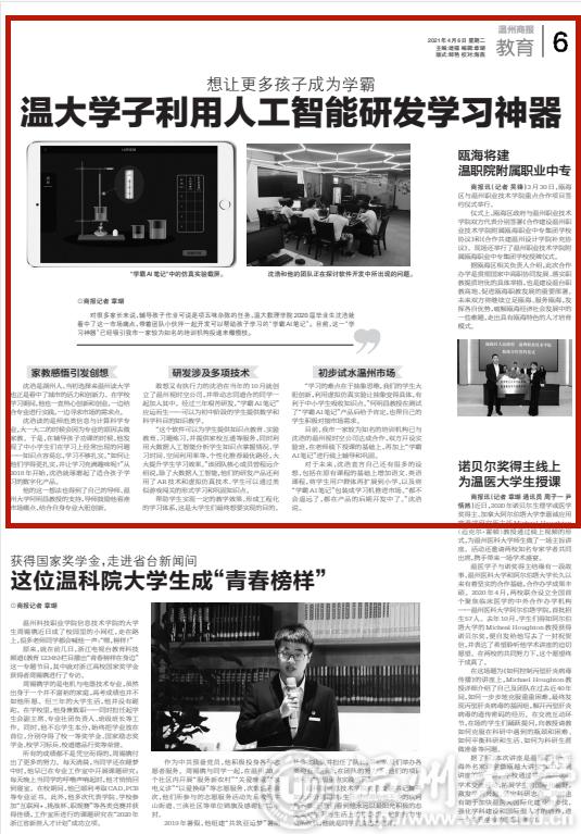 温州商报:想让更多孩子成为学霸 温大学子利用人工智能研发学习神器