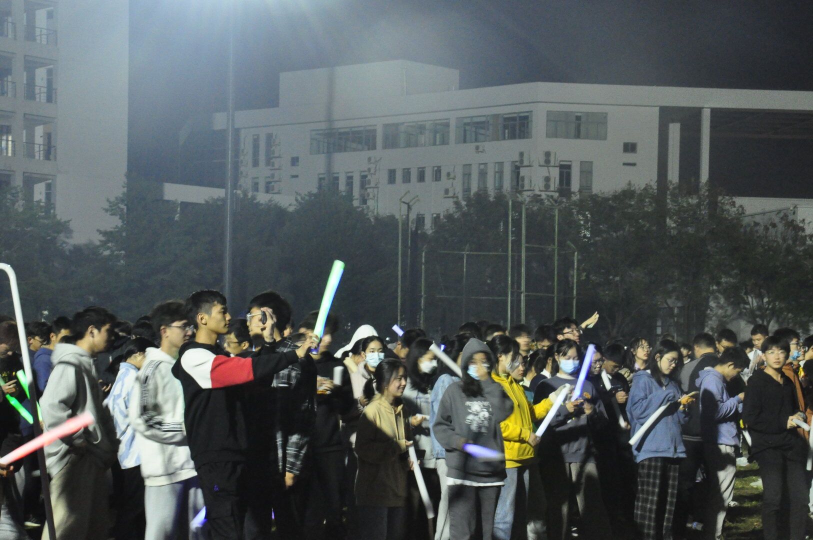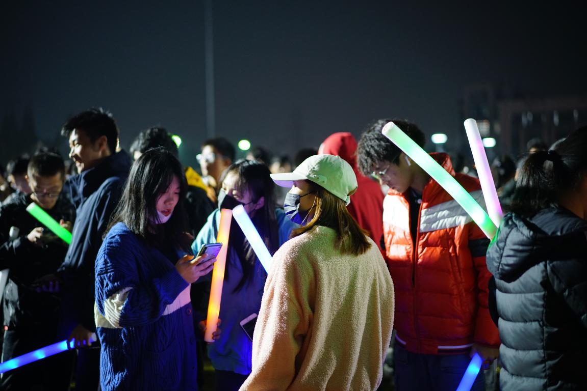 当天晚上18:30,在主持人介绍规则和集体承诺安全后,随着一声令下,参与同学以小组为单位,满怀激情依次出发。他们手握荧光棒,在校园夜色中寻找相关打卡点,依打卡点顺序跑完预定路程,最后以用时少者为胜。