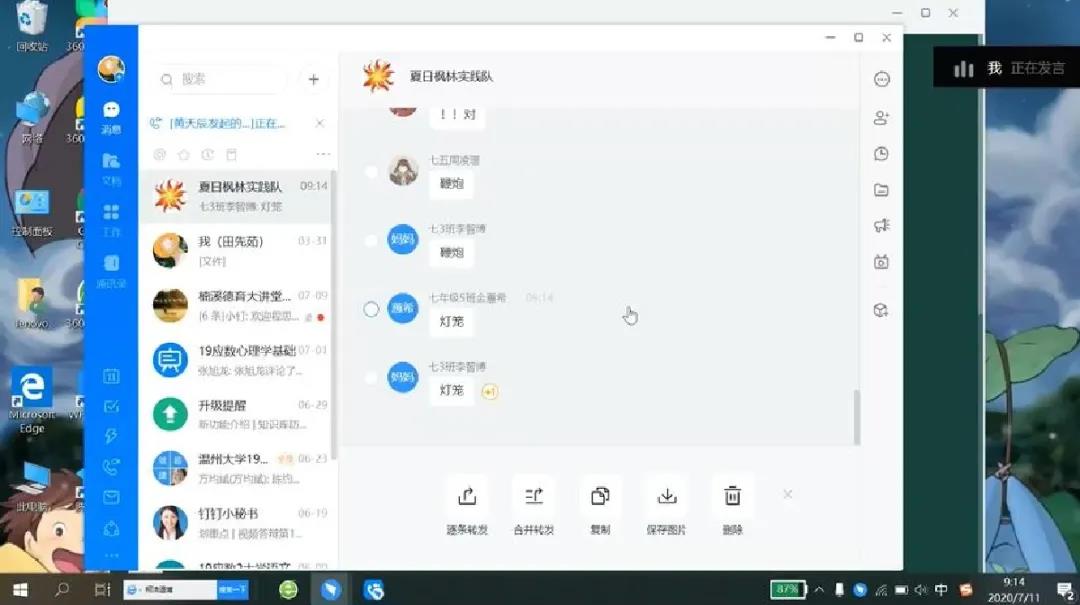 2020年7月11日,夏日枫林实践队在上午9点准时在钉钉群开展周末游戏环节,该环节由宣传组组长黄天辰主持,实践队成员共同组织完成。