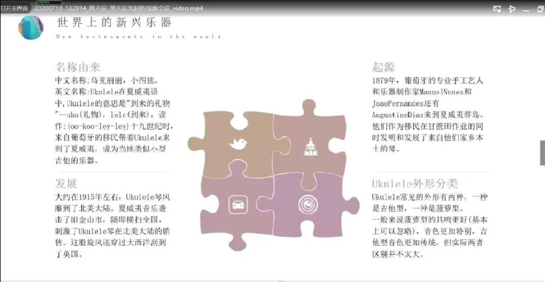 在悠扬的音乐声中,老师开始讲解音乐知识。这节课,老师介绍了主流的乐器和新兴的乐器,带同学们沉浸于在音乐的海洋之中。老师具体介绍了钢琴、尤克里里、拇指琴等乐器,从它们的起源到发展再到演奏效果。这节课使同学们对音乐的理解更加深刻,有助于在潜移默化中培养他们对音乐的兴趣。