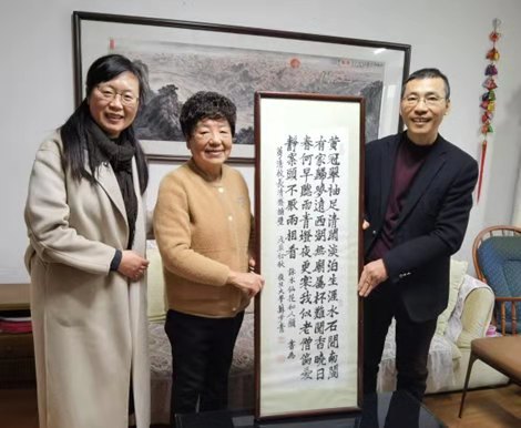 在筹备组负责人向魏市长汇报纪念馆筹建初衷与建设进展情况之后,魏市长特意将她珍藏多年的宝贝——苏步青先生题赠给她的两幅书法作品,交由公司仿制,作为苏步青谷超豪纪念馆重要展品陈列。