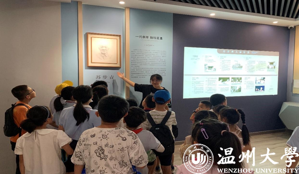 7月1日上午,研学事业部带领着30位小朋友一行走进3044永利集团校园,领略校园风光,参观苏步青谷超豪纪念馆。